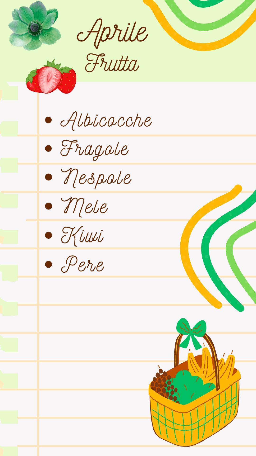 La frutta e la verdura di Aprile