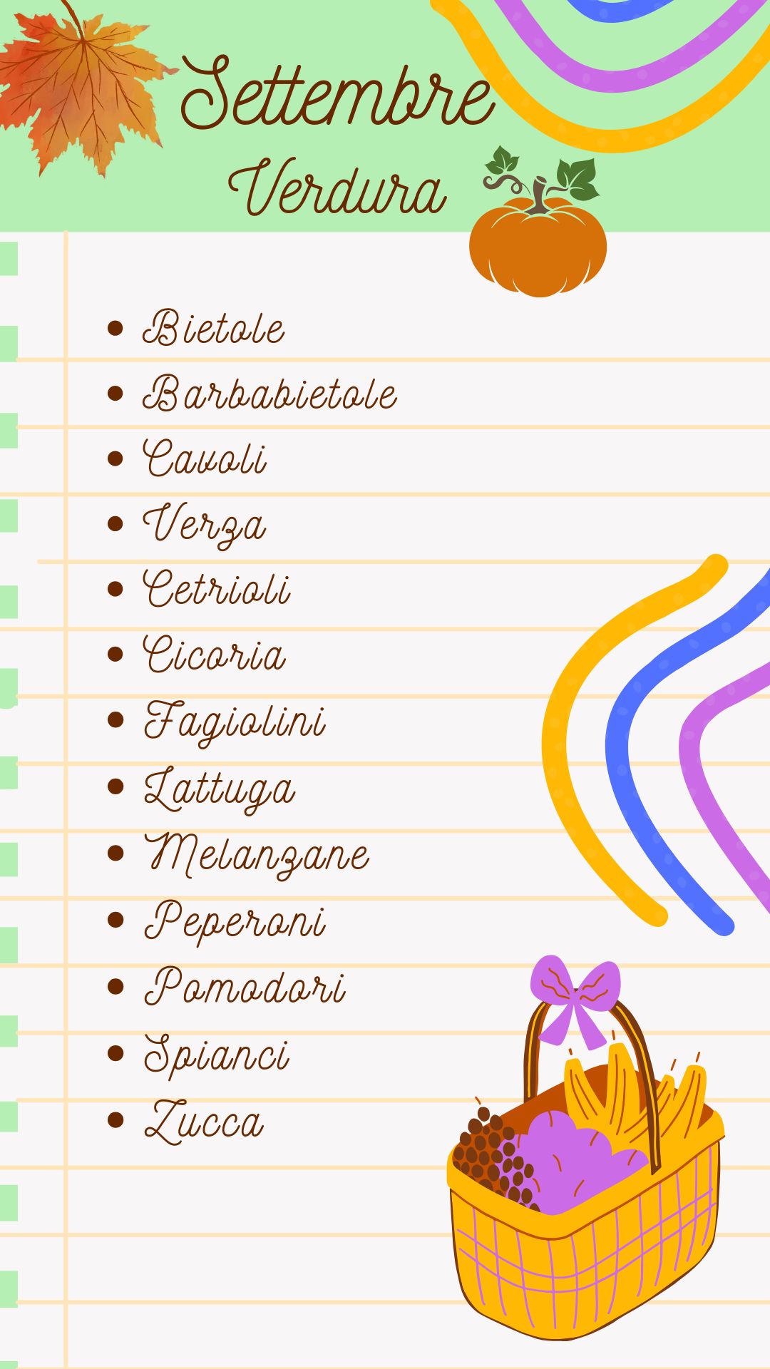 La frutta e la verdura di Settembre