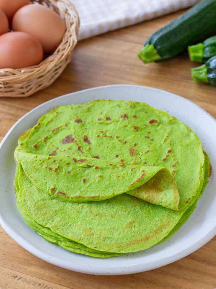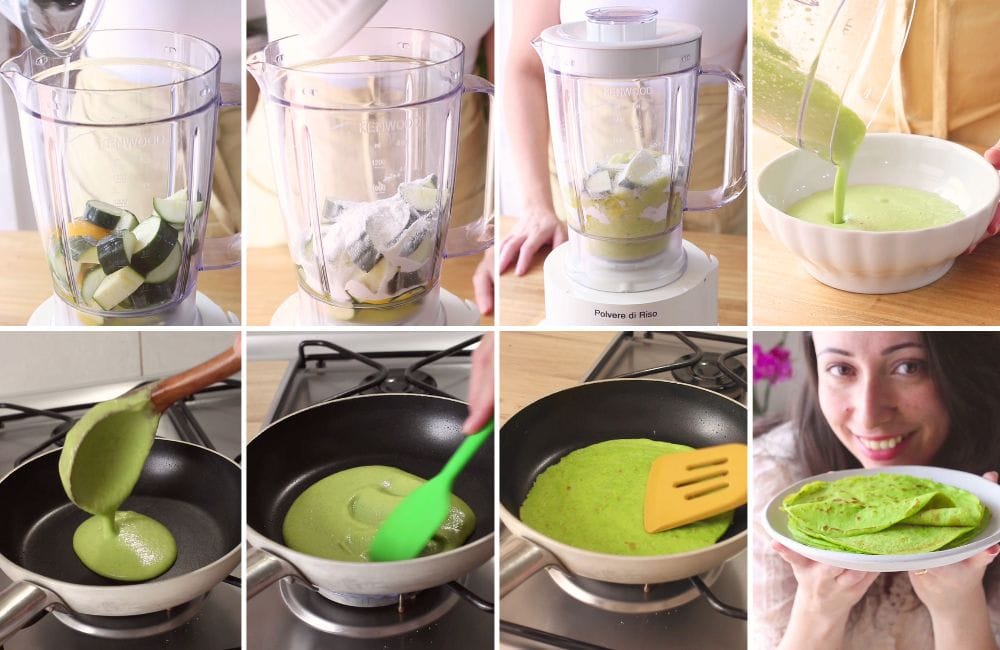 Dimenticate le lunghe preparazioni: per queste crepes alle zucchine bastano pochissimi ingredienti – zucchine fresche, uova, farina di riso e un pizzico di sale – e un semplice frullatore. In pochi istanti, otterrete una pastella liscia, vellutata e dal colore verde brillante, pronta per essere trasformata in deliziose crepes sottili e morbide. La cottura in padella è altrettanto rapida, richiedendo solo pochi minuti per lato a fuoco dolce.