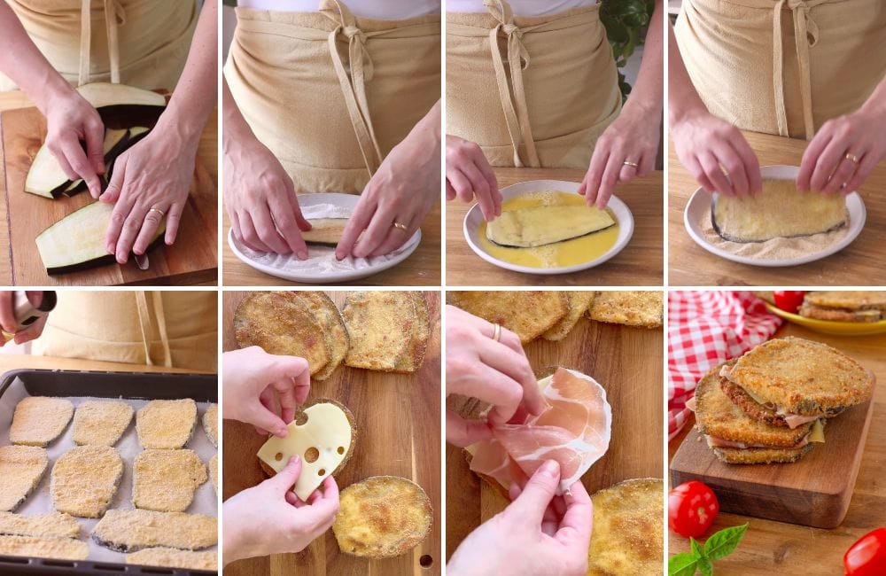 Immaginate due fette di melanzane, tagliate sottili, avvolte in una panatura dorata e fragrante, e cotte al forno (oppure in friggitrice ad aria) fino a diventare perfettamente croccanti fuori e tenere all’interno.